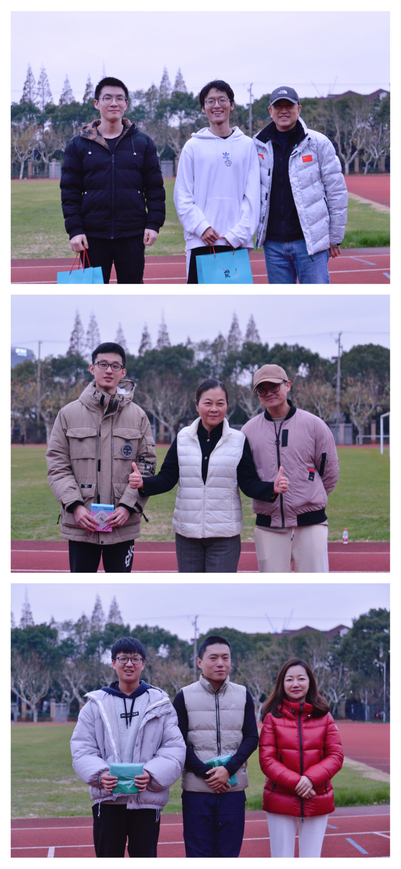 速度测试赛开始后,红色跑道上,是硕博研究生学长学姐奋力奔跑的身影;终点线前,身着统一裁判服的本科员工会学弟学妹们,一丝不苟严谨地打秒统计成绩;老师们或在场边为自己的弟子们加油,或干脆加入奔跑的队伍一起向前……田径场上,蓝天绿草间,师生们共同见证了坚持运动所带来的身心愉悦与快乐体验。最后,院领导为测试赛一二三等奖代表颁奖,鼓励他们保持良好的学习运动习惯,争取齐进步双丰收。