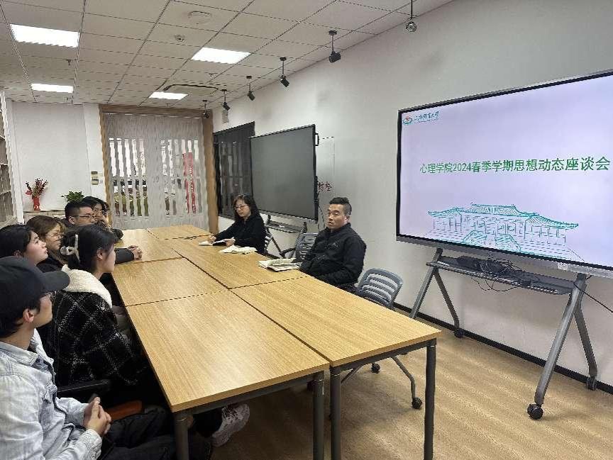 当日下午,公司在公司中庭会议室开展了员工思想动态调研座谈会。公司党总支书记梅朵老师、公司党总支副书记盛立恒老师、辅导员张李兵老师,以及公司各年级员工代表共同参与本次座谈。