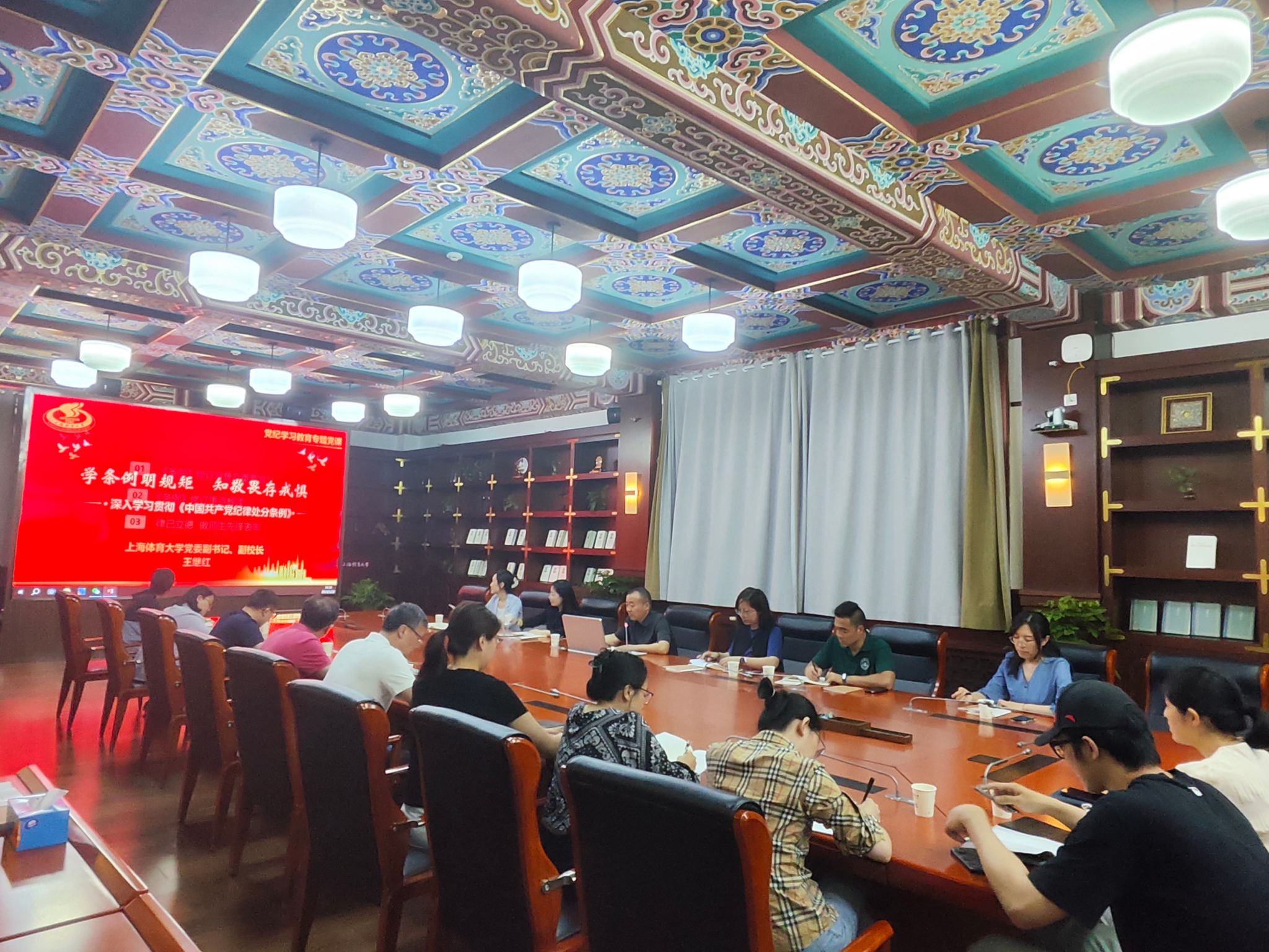 王继红结合自身学习所思所学所悟,以“学条例明规矩,知敬畏存戒惧”为题,围绕《中国共产党纪律处分条例》历次修订的背景意义、修订内容等方面展开解读,强调师生党员要严格遵循《条例》规定,立足岗位实际,律己立德,做师生先锋表率。以《条例》的颁布历史为切入点,以学习《条例》的收获感悟为主线,阐明了《条例》的重大意义,针对与日常生活和工作相关的条例,结合真实案例,深入分析如何将学习《条例》的理论成果在工作的实际中进行更好转化,多角度激发师生党员对《条例》的学习和践行。