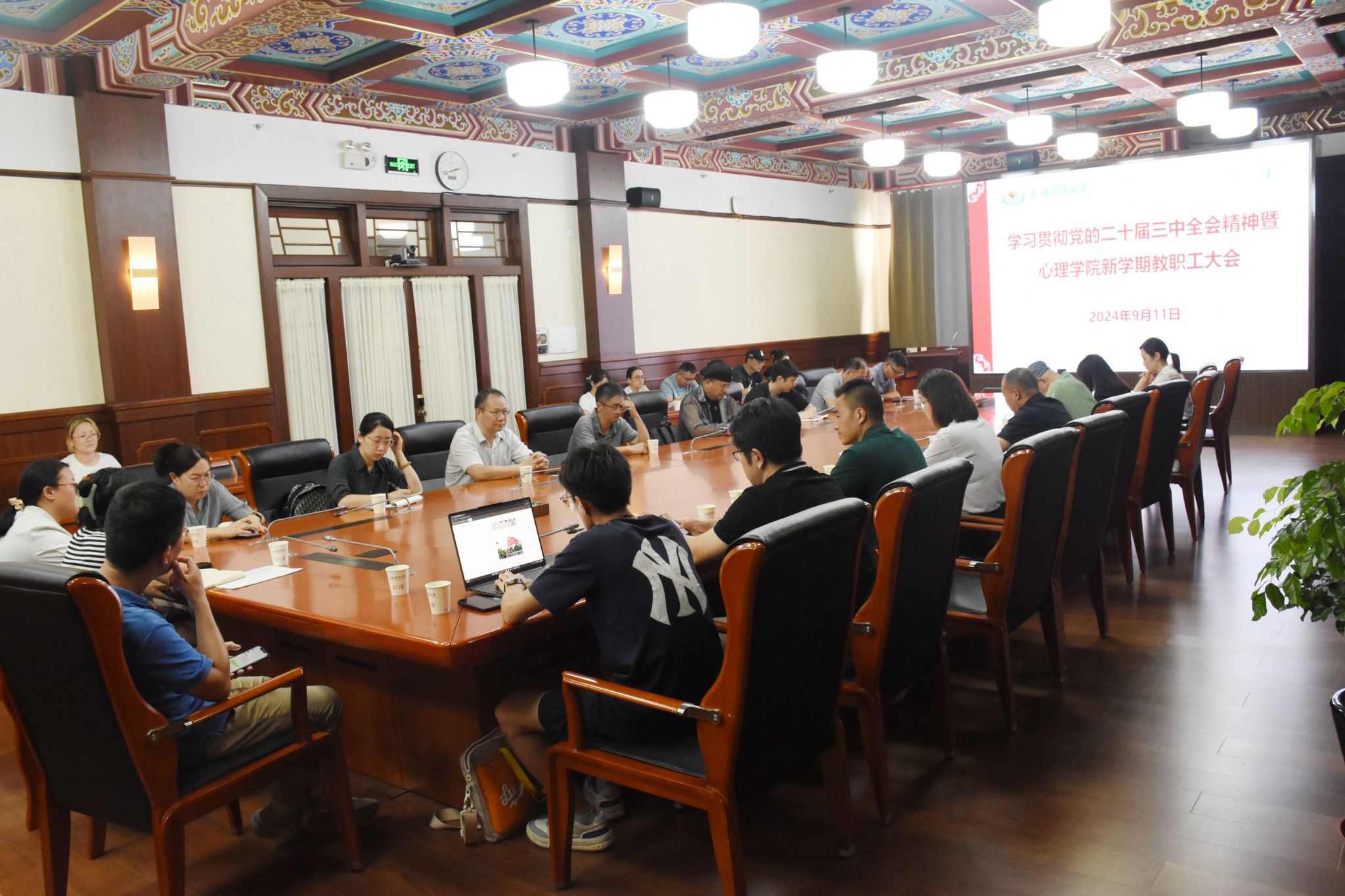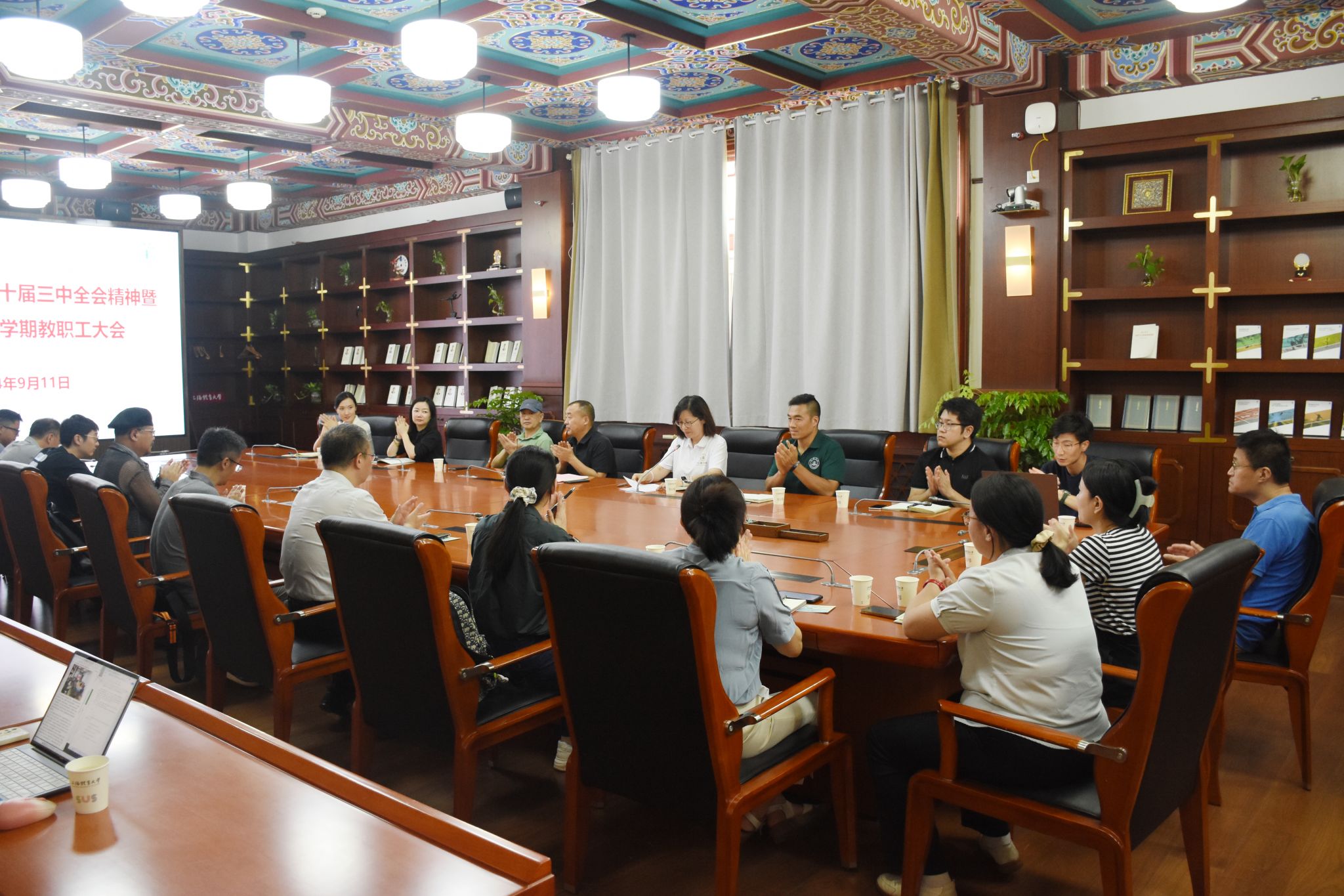 9月11日,BB贝博艾弗森在绿瓦大楼第四会议室召开学习贯彻党的二十届三中全会精神暨BB贝博艾弗森新学期教职工大会。公司党委副书记、副董事长王继红,BB贝博艾弗森领导班子及全体教职工出席大会。大会由心理公司党总支书记梅朵主持。