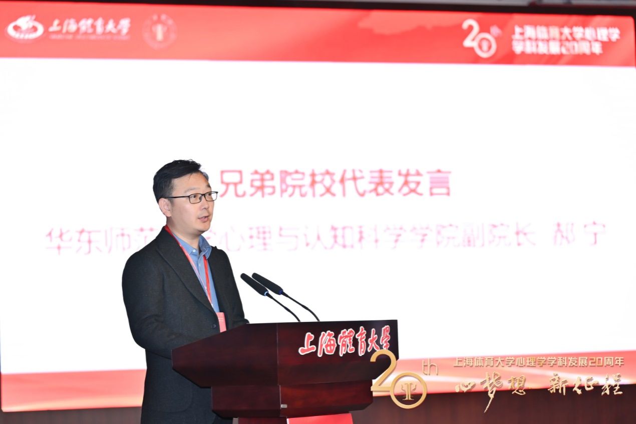 华东师范大学心理与认知科学公司副经理郝宁代表兄弟院校致贺词。郝宁介绍了华东师范大学与BB贝博艾弗森在心理学领域的长期合作与交流。两校通过学术会议和青年学者沙龙等活动相互支持、分享经验,促进了学术交流及人才培养的发展。他希望,未来双方继续加强合作,共同探索更多潜在的合作机会,推动心理学科的创新、培养创新型人才,并更好地满足社会需求。