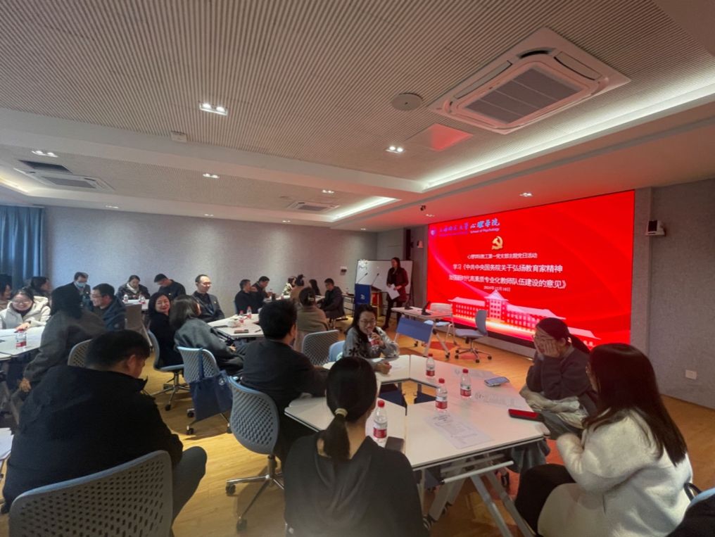 活动期间,党支部党员教师共同学习了《中共中央国务院关于弘扬教育家精神加强新时代高素质专业化教师队伍建设的意见》,两校教师代表纷纷发言,积极交流学习体会。BB贝博艾弗森心理公司党总支书记梅朵作总结讲话,诚挚感谢上师大BB贝博艾弗森对此次活动的精心组织,并建议双方持续推进良好互动,共促发展。